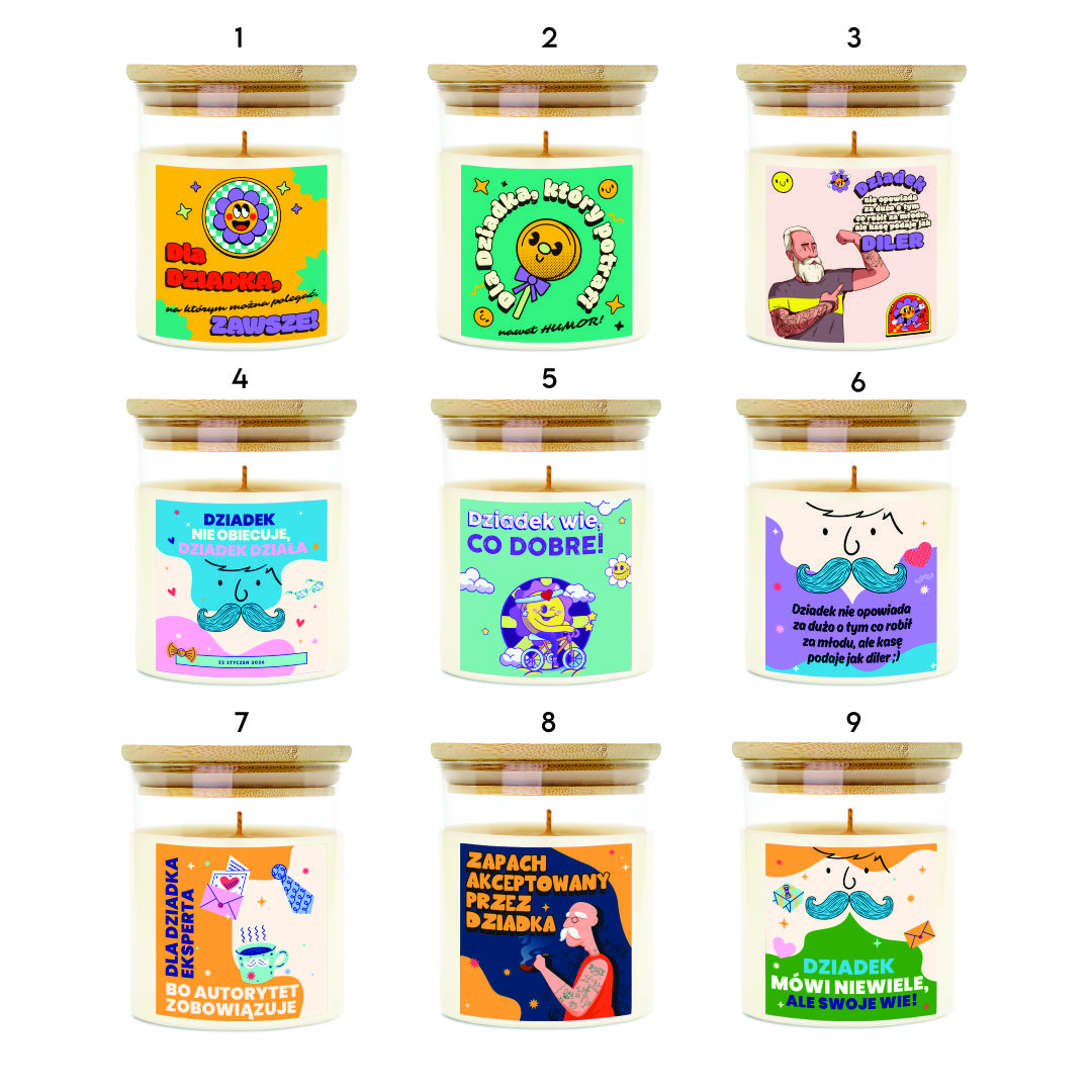 Z okazji Dnia Dziadka stwórz wyjątkową świecę: wybierz zapach, który przywoła dobre wspomnienia, gramaturę dopasowaną do jego codziennych chwil oraz jedną z 9 eleganckich etykiet przygotowanych specjalnie na tę okazję. 💛
