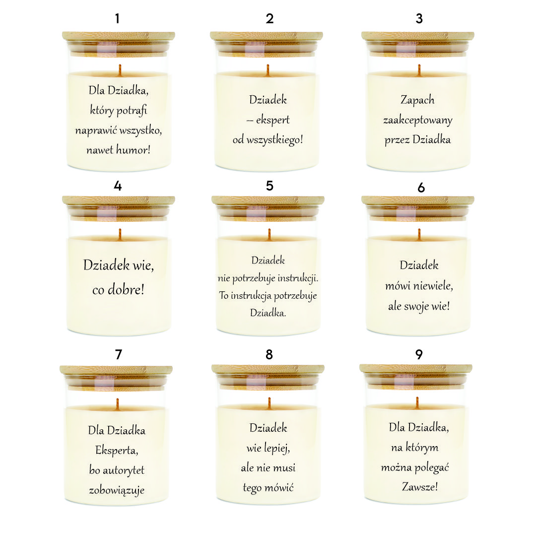 Z okazji Dnia Dziadka stwórz wyjątkową świecę: wybierz zapach, który przywoła dobre wspomnienia, gramaturę dopasowaną do jego codziennych chwil oraz jedną z 9 eleganckich etykiet przygotowanych specjalnie na tę okazję. 💛